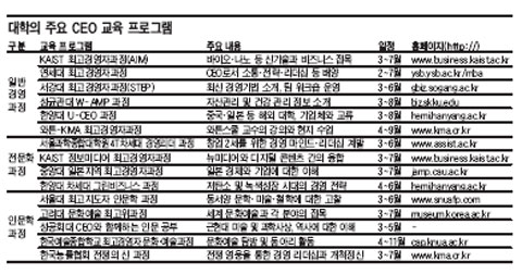 그러다 보니 CEO들이 관심을 가질만한 새로운 이슈를 선점하기 위해 각 대학 최고경영자과정의 경쟁이 더욱 치열해지고 있다.