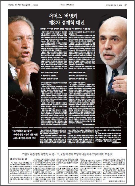 7면에는 최근 경제학계를 뜨겁게 달구고 있는 로런스 서머스 전 미국 재무장관과 벤 버냉키 전 FRB 의장의 논쟁을 실었습니다.